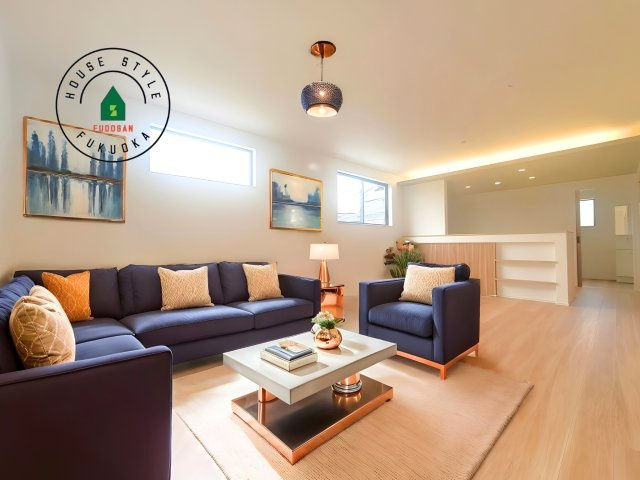 【居間・リビング】明るく開放的なリビングダイニングは豊かな陽光が注ぎ込み、やすらぎの空間を演出してくれます。ご家族で楽しいひとときをお過ごし下さい。※家具はCGを合成したものです。